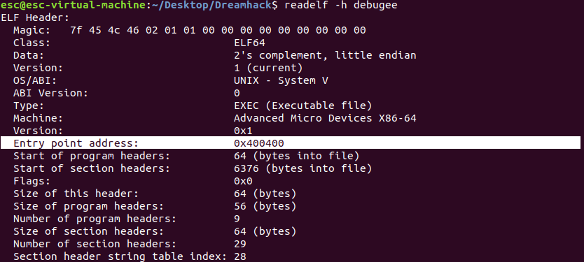 readelf로 확인해본 결과, debugee의 진입점은 0x400400이다.