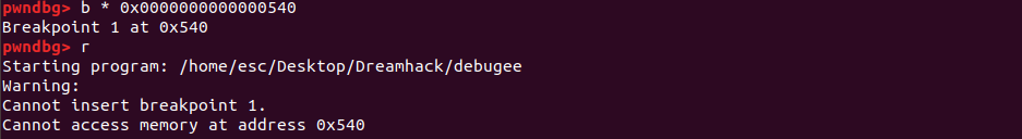 그렇다고 바로 0x540에 브레이크 포인트를 설정하고 실행하면 안된다.