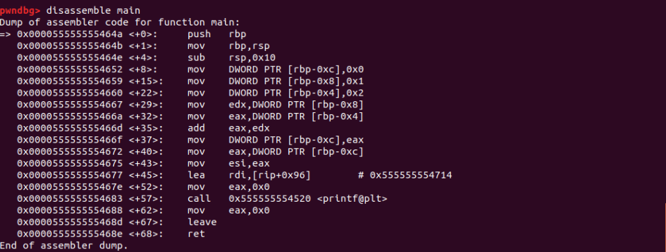 gdb는 기계어를 디스어셈블(Disassemble)하는 기능을 기본적으로 탑재하고 있다.