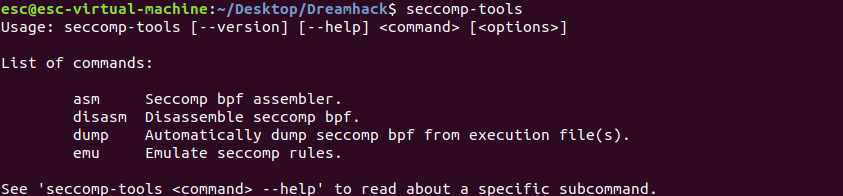 seccomp-tools는 SECCOMP가 적용된 바이너리의 분석을 도울 뿐만 아니라 BPF 어셈블러/디스어셈블러를 제공하는 유용한 도구이다.