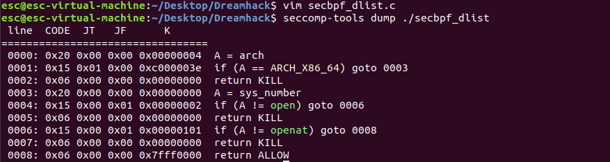SECCOMP는 시스템 콜 뿐만 아니라 전달되는 인자까지 추적하고 비교할 수 있다.