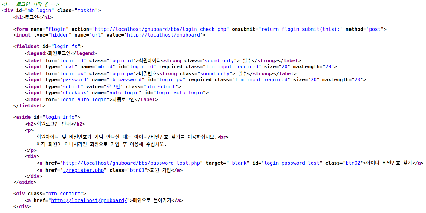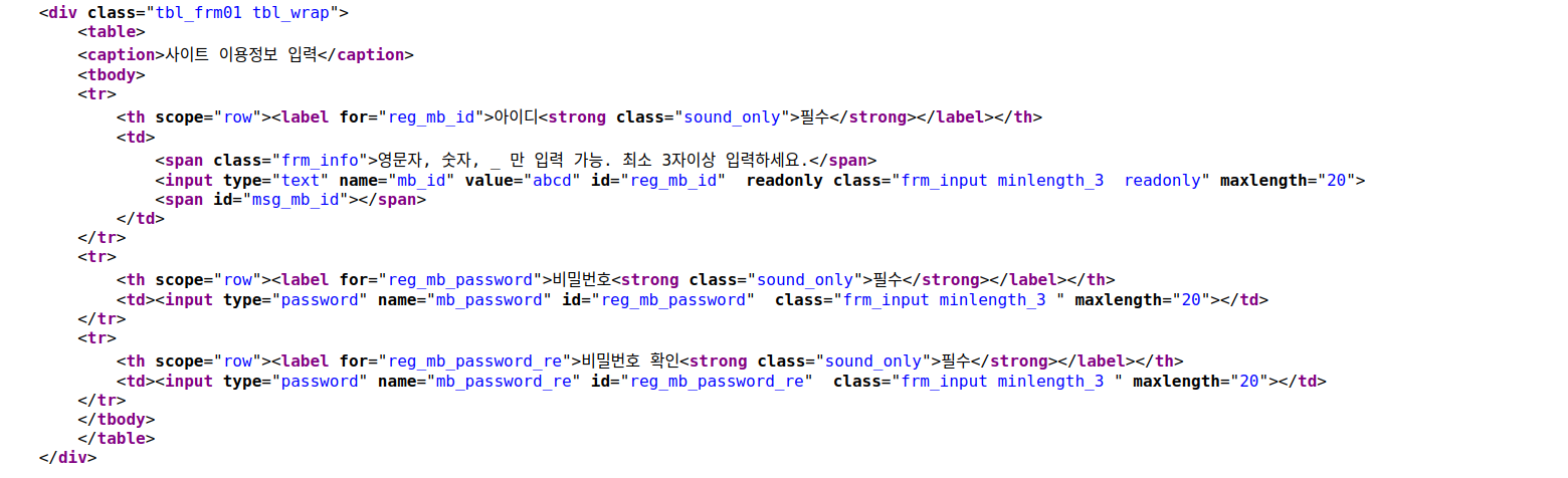 - 중요정보(개인정보, 계정정보, 금융정보 등)를 HTML 소스에 포함하지 않도록 한다.