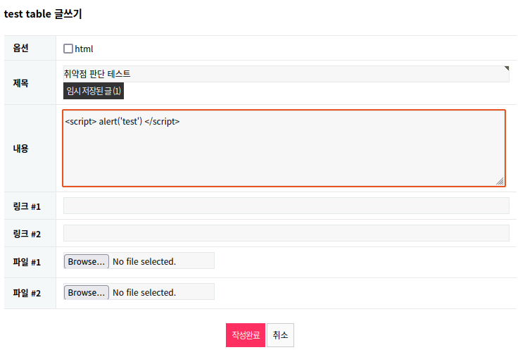 3. 데이터 수정 페이지에서 전송되는 요청(Request) 정보를 분석하여 임의의 명령을 수행하는 스크립트 삽입 후 해당 게시글을 타 사용자가 열람하였을 경우 스크립트가 실행되는지 확인