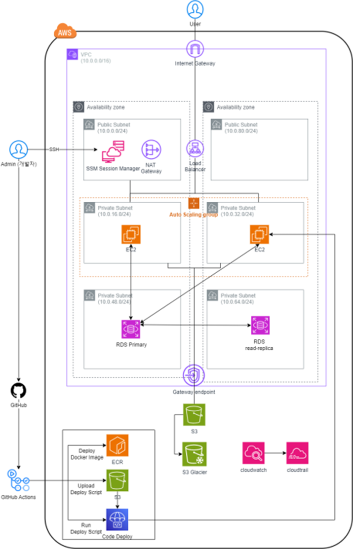 아키텍처도 아키텍처지만 정말 CI/CD 파이프라인을 구성한 것이 자랑스러워서 따로 이미지도 만들었다.