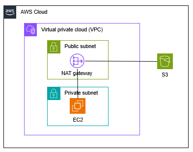 S3는 VPC 외부에 위치하기 때문에, EC2 → NAT Gateway → S3로 연결된다.