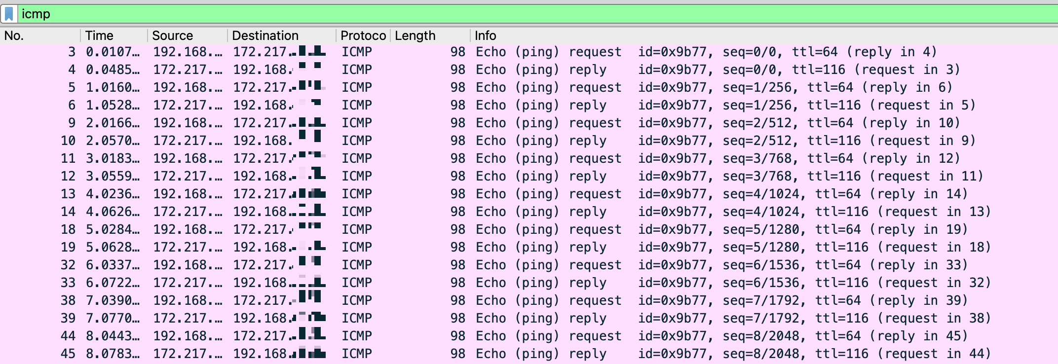 id=0x9b77로, 이것으로 같은 ping 세션을 식별할 수 있다.