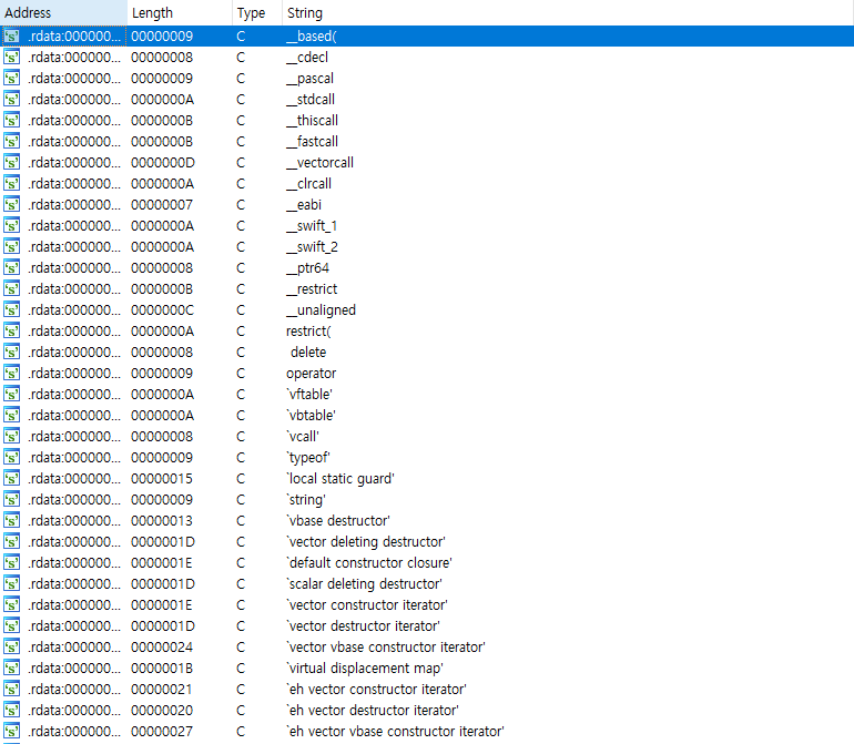 IDA는 바이너리에 포함된 문자열을 쉽게 찾을 수 있도록 “문자열 탐색” 기능을 제공하고 있다.