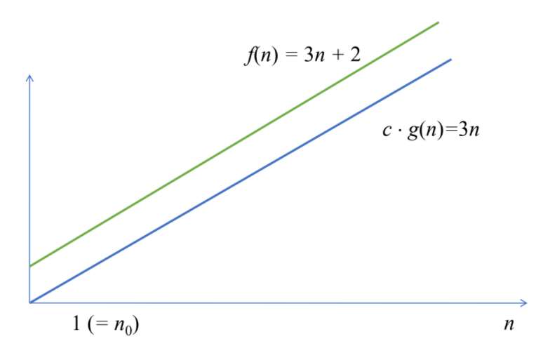 알고리즘 성능에 영향을 크게 미치는 고차항 부분만을 취하여 근사적으로 표기한다.