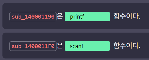 이 때는 익숙한 함수를 중점적으로 찾아보면서 어떤 기능을 하는 함수일지 알아내는 방식으로 추론한다.