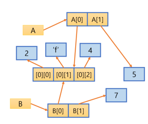 위의 프로그램은 변수 a와 b가 같은 값을 참조한 뒤 b의 값을 변경하는 내용이다.