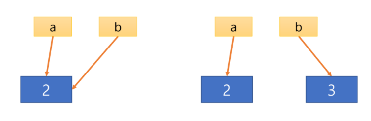 만약 b의 값을 변경하면, b는 새로 생성된 리터럴(3)을 가리키게 되고 변수 a가 참조하는 값에는 변화가 없다.