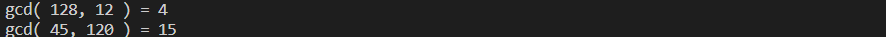 print("gcd( %d, %d ) = %d" % (x, y, gcd(x, y)))