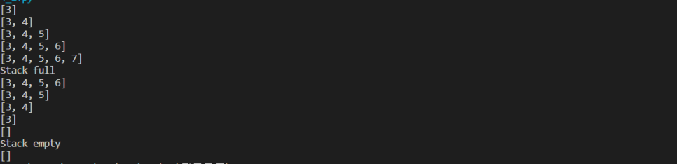 위 프로그램에서는 리스트를 사용하여 크기가 5인 스택을 생성한다.